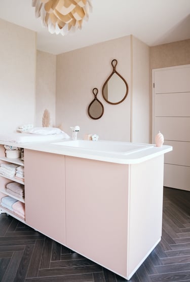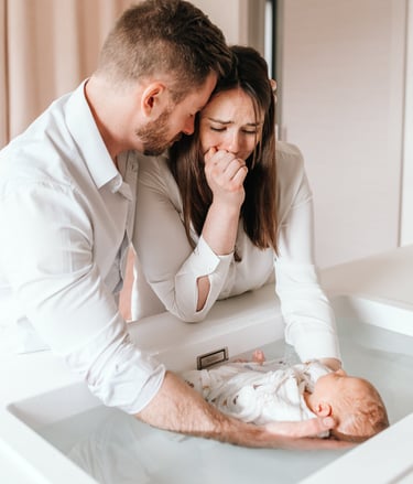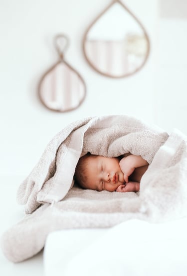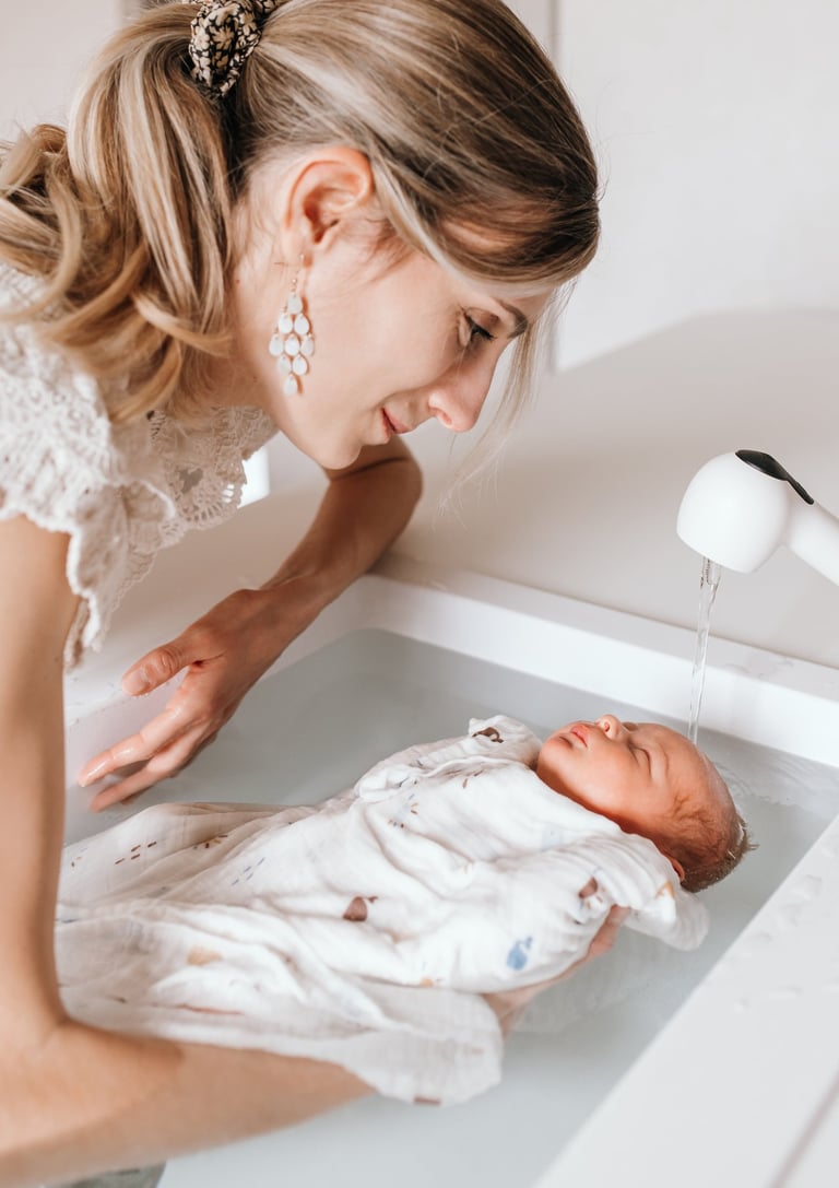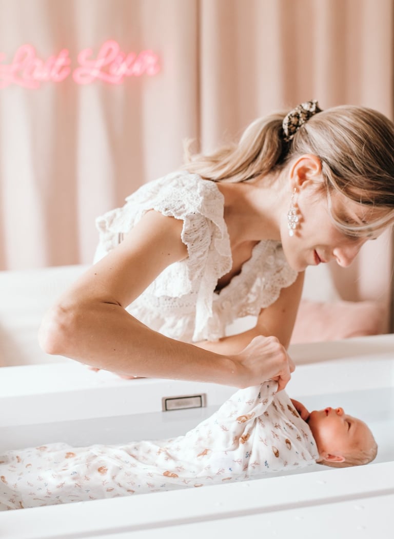 Après le bain, je vous laisse un moment ensemble pour atterrir. Idéal pour faire du peau-à-peau avec papa ou maman, téter, boire un biberon...